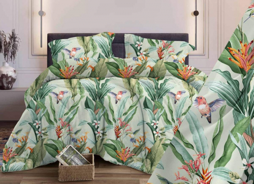 Постельное белье изготовлено из натуральной 100%-ой хлопковой ткани плотного плетения. Экологически чистый природный материал, способный сохранить яркость рисунка после множества стирок. Хорошо пропускает воздух, создавая комфортную атмосферу для сна в вашей кровати.