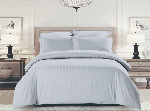 Страйп-сатин – это премиальная ткань, сочетающая в себе мягкость и прочность. Сочетание сатинового и жаккардового плетений создает однотонный рисунок с чередованием глянцевых и матовых полосок.