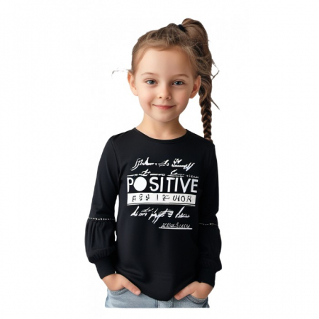 Красивая модель из мягкого трикотажа, яркое украшение, стильные шифоновые рукава понравятся девочкам.