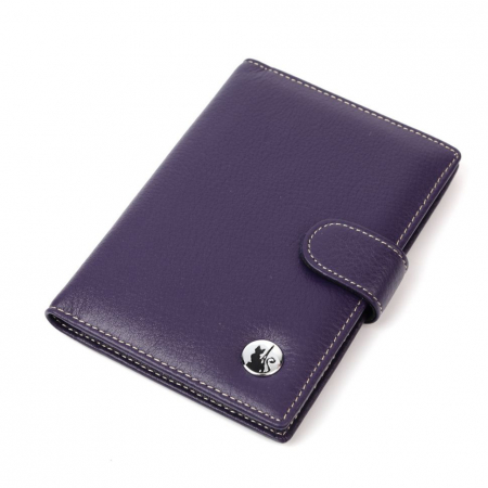Женская кожаная комбинированная обложка от Sergio Valentini. Закрывается на хлястик с кнопкой. Внутри: отделение для паспорта, отделение с прозрачным вкладышем для автодокументов, на левой створке: три кармашка для пластиковых карт, прозрачный карман для фотографии, на правой створке: пять кармашков для карточек и один боковой карман.