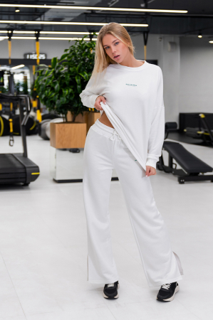 Женские брюки прямого кроя, с разрезами по боковым швам (принт "Quiet the Mind"). Материал: French terry б/н - футер 3-х нитка без начеса. Один из самых плотных разновидностей футера. Тёплый, приятный на ощупь материал с гладкой лицевой стороной и мягким и с рыхлой фактурой с изнаночной стороны. В стирке требует более бережного обращения. Рекомендуется утюжить и стирать вывернутыми (особенно изделия с принтом) на изнаночную сторону при температуре 30 градусов. Внимание! Брюки (артикул 60.B.394-Крем) можно приобрести только в комплекте с свитшотом (артикул 60.J.461-Крем)
