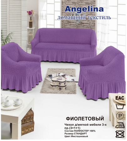 Состав набора: чехол на диван - 1 шт., чехол на кресло - 2 шт., фиксаторы для чехлов.