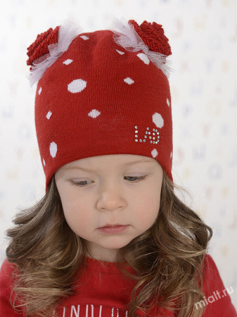 Полушерстяная шапочка с завязками для девочки до 3 лет. Хлопковая подкладка гарантирует комфорт. Декорирована вязанными розочками с фатином. На фронтальной части головного убора стразовая композиция.