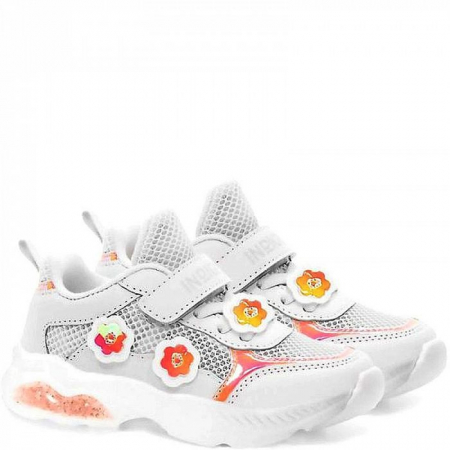 Нежная и красивая модель в белом и розовом цвете. Для девочек дошкольного и младшего школьного возраста с размерами 26-32. Модель выполнена из легкого дышащего текстиля со сквозной перфорацией. Кроссовки легкие и удобные. Девочкам понравятся красивые элементы оформления в виде цветов на боковой поверхности и на ремне. Подклад и стелька в модели хлопковые, для ног ребенка создается оптимальный микроклимат. Стелька анатомической формы, помогает поддерживать свод стопы в правильном положении. Подошва из легкого и износостойкого материала ЭВА. На ногах кроссовки крепятся с помощью ремня и шнурка-резинки.
