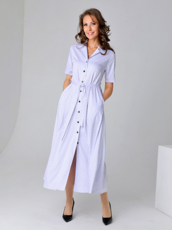 Длинное платье-рубашка приталенного силуэта с расклешенной юбкой и втачными рукавами. Застежка на петли и пуговицы. Воротник английского типа с лацканами. Карманы расположены в боковых швах. Дополняйте эту лаконичную женственную модель платья из приятной поливискозы аксессуарами, меняйте обувь, и Вы почувствуете себя комфортно в офисе, на прогулке и на вечернем мероприятии.