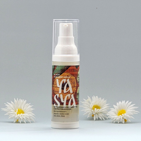Обновляющая сыворотка комплексно решает проблемы кожи кожи . Совокупность кислот и растительных экстрактов обладает успокаивающими и увлажняющими свойствами, минимизирует покраснения и обеспечивает себум контроль. Входящие в состав кислоты (азелаиновая , салициловая) сужают поры, выравнивают тон и рельеф кожи. Экстракты конопли, крапивы и шалфея способствуют снятию воспалений и заживлений. Способ применения:Нанесите несколько капель сыворотки на протонизированную кожу и равномерно распределите мягкими массирующими движениями по лицу, шее и зоне декольте. Mentha Piperita Water (гидролат мяты), Artemisia Absinthium Leaf Water (гидролат полыни), Rosmarinus Officinalis Water (гидролат розмарина), Salvia Officinalis Water (гидролат шалфея), Azelaic Acid (азелаиновая кислота), Niacinamide (витамин В3), Zinc PCA (цинковая соль пирролидон-карбоновой кислоты), Glycolic Acid (гликолевая кислота), D-Panthenol (провитамин В5), Aloe Barbadensis (Aloe Vera) Leaf Gel (гель алоэ вера), Salicylic Acid (салициловая кислота), Algin (натрия альгинат), Cannabis Sativa (Hemp) Extract (экстракт конопли), Urtica Dioica Leaf Extract (экстракт крапивы), Salvia Officinalis Extract (экстракт шалфея мускатного), Rosmarinus Officinalis (Rosemary) Leaf Extract (экстракт розмарина), Xanthan Gum (ксантановая камедь), Консервант LekoGuard BBD Green (Benzoic Acid, Benzyl Alcohol, Dehydroacetic Acid) (бензойная кислота, бензиловый спирт, дегидроуксусная кислота), Parfum (парфюмерная композиция).