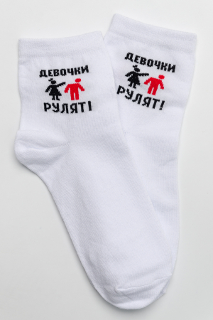 Удобные женские носки с надписью. Отличный выбор для девушек в качестве сувенира на 8 марта. Носки средней длины легко впишутся в повседневный лук. Прочные, из натурального хлопка с добавлением эластана, не выстирываются и не скатываются. Удобная широкая резинка.