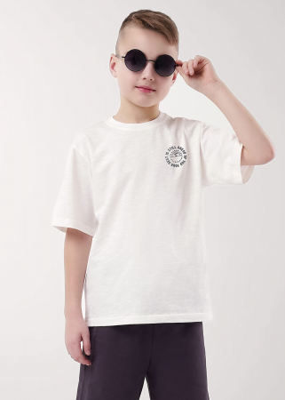 Свободная футболка из легкого флама отлично впишется в твой летний гардероб. Горловина оформлена эластичной окантовкой. По переду минималистичный принт.