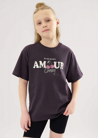 Актуальная футболка умеренного обьема из 100% хлопка отлично впишется в твой летний гардероб. Горловина оформлена кашкорсе. По центру переда трендовый принт.