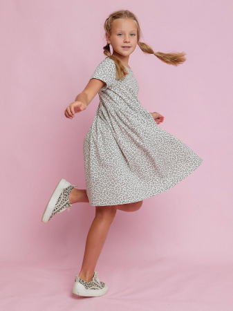 Платье с коротким рукавом для девочки трикотажное из супрема. Красивое летнее платье с леопардовым принтом. Мягкий эластичный трикотаж из смесового хлопка.