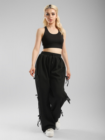 Брюки палаццо женские Соль&Перец в стиле спорт-шик, с лентами по бокам. По талии брюки на широкой, эластичной резинке со шнурком. Низ брючин на кулиске, что позволяет регулировать длину. Брюки выполнены из износостойкой трикотажной ткани Лининг которая долго сохраняет форму и привлекательный внешний вид.