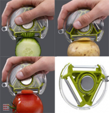 Это гармоничное соединение многофункциональности и интересного дизайнерского решения. Теперь одно приспособление поможет очистить овощи и фрукты разной степени твердости всего за пару минут.