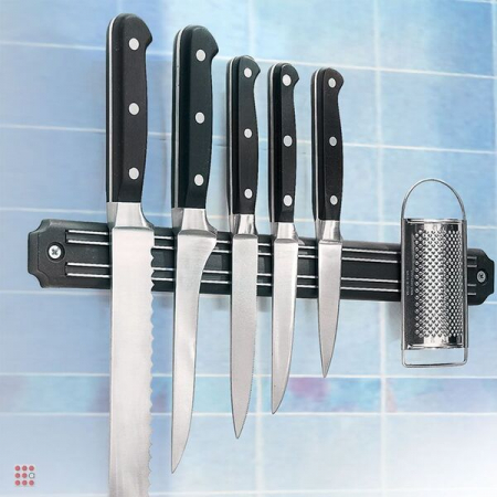 На кухне ножи всегда нужны под рукой, а хранить их в столе не очень удобно. Поэтому магнитный держатель для ножей - это настоящая находка для любой хозяйки. Он представляет собой горизонтальную панель, которая крепится к стене при помощи двух шурупов, которые идут в комплекте. Изготовлен из металла с магнитными вставками.