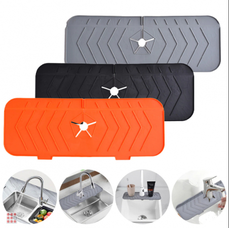 Силиконовый коврик незаменимый аксессуар на вашей кухне и в ванной комнате, защитит поверхность от известкового налета, плесени и ржавчины. Сохранит поверхность раковины чистой и сухой, избавит от брызг и разводов. Коврик для раковин выполнен из высококачественного, безопасного, прочного материала. Практичный девайс удобен в использовании, легко очищается, нескользящий, водонепроницаемый, подходит для длительного использования. Органайзер на раковину можно использовать, как подставку для моющего средства, губок и других необходимых предметов. Силиконовый коврик для раковин надежно защищает поверхность от влаги, имеет универсальный размер отверстия для любого крана, сгибающий бортик и два слива для воды в раковину. Коврик предназначен для широкого применения: установите его на кухне, в ванной комнате или в других местах, где есть смеситель, таких как школы, рестораны, или отели. Вы сэкономите время на уборку, избавитесь от ненужной влаги на поверхностях, извести и налета, а также сохраните чистоту и приятный запах.