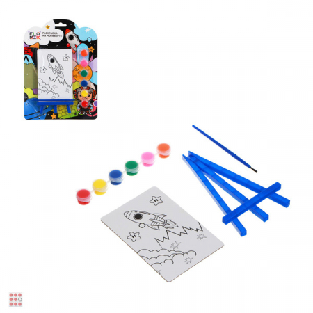Набор для росписи картины FLOMIK - отличный подарок для ребёнка, который будет способствовать развитию его творческих способностей. Набор включает холс с нанесенным на него рисунком, 6 красок, кисточку и мини-мольберт. С помощью этого набора маленький художник сможет самостоятельно нарисовать красивую картинку с изображением космической ракеты. Готовую поделку можно подарить близким или использовать для украшения интерьера.