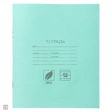 Тетрадь школьная 12л. в линейку, блок №2 зеленая обл., скрепка