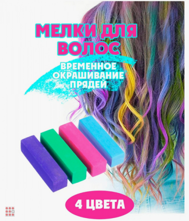 В наборе содержится 4 прямоугольных мелка различных оттенков, что позволяет вам выбрать подходящий цвет или создать интересные комбинации. Набор мелков для окрашивания волос подходит для любого типа волос и может использоваться как на каждый день, так и на особых мероприятиях. Они легко смываются с волос при помощи шампуня, что позволяет вам менять цвет волос по своему желанию.