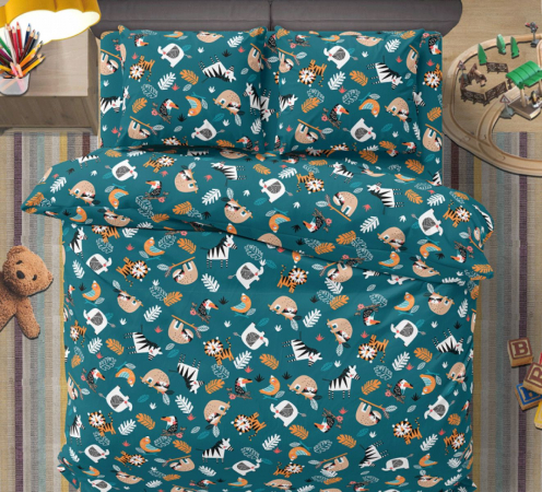Комплект постельного белья произведен из бязи (100% хлопок). Бязь - мягкая, но износостойкая ткань, немного шероховатая на ощупь. Постельное бельё из бязи отлично стирается, выдерживая более сотни стирок, сохраняя яркость рисунка.
