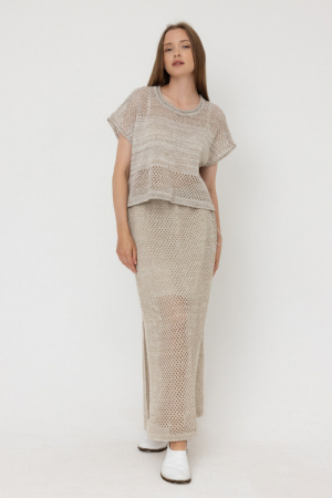 Рукав спущенный,горловина круглая,по бокам шнурок.
