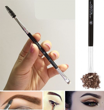 Представляет собой скошенную тонкую и плоскую кисть из высококачественных синтетических волокон с одной стороны и щеточки для моделирования бровей – с другой.
