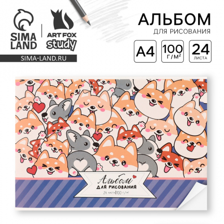 Альбом для рисования А4 24 листа на скрепке «Корги» ВД-лак (арт. 10181633)