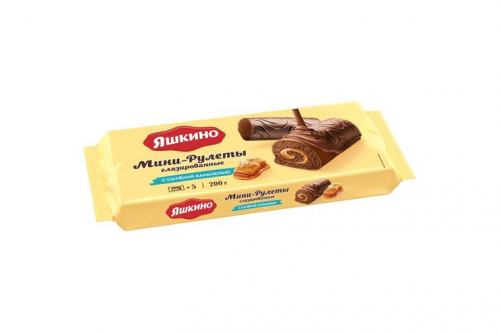 Бисквитный мини-рулет украшен глазурью.