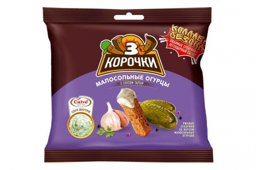 Состав продукта: Сухарики ржаные со вкусом малосольных огурцов. Состав- мука ржаная, мука пшеничная, вода питьевая, масло растительное (содержит антиокислитель- Е319), ароматизатор (соль, глюкоза, мальтодекстрин, усилители вкуса и аромата (Е621, Е627, Е631), молоко сухое цельное, натуральные вкусоароматические вещества, вкусоароматические вещества, сахар, регуляторы кислотности (диацетат натрия, Е330), петрушка зелень сушеная, лук порошок, чеснок порошок, куркума молотая, краситель куркумин); соль, дрожжи хлебопекарные. Может содержать следы ракообразных, рыбы, сои, сельдерея, горчицы.