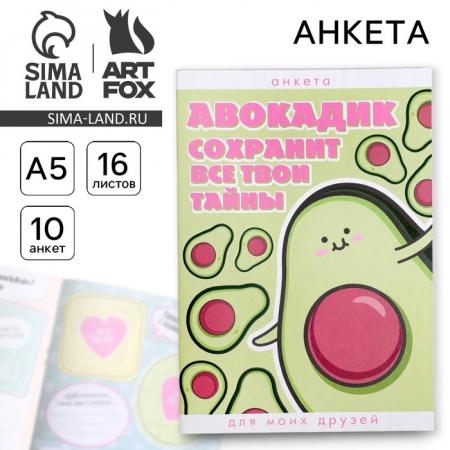Анкета для девочек «Авокадик сохранит все твои тайны», А5, 16 листов (арт. 5400001)
