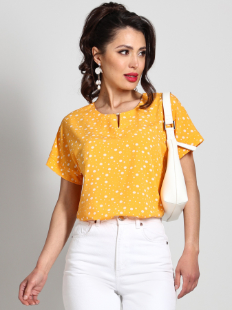 Желтая блузка в горошек – это стильное и практичное дополнение к вашему повседневному гардеробу. Изготовленная из легкой ткани, она обеспечивает комфорт и свободу движений на протяжении всего дня. Ткань приятна на ощупь и позволяет коже дышать, что особенно важно в теплое время года. Яркий желтый цвет в сочетании с игривым горошком придаёт блузке свежий и жизнерадостный вид. Такой дизайн позволяет выделиться из толпы и привнести в повседневный образ нотку радости и энергии. Горошек является классическим принтом, который всегда в моде, и он отлично сочетается с различными элементами гардероба.