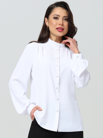 Нарядная блузка на пуговицах — стильная модель, которая с легкостью впишется как в повседневный, так и в деловой гардероб. Полуприлегающий фасон со слегка удлиненной спинкой и небольшими разрезами по бокам гарантирует идеальную посадку и дарит чувство комфорта. Дополнительную легкость блузке придают воздушные рукава с напуском на манжетах. Воротник-стойка элегантно завершает модель и смотрится оригинально. Сдержанный, приятный оттенок позволяет носить ее не только в повседневной жизни, но и на работу. Изделие выполнено из легкой, приятной к телу ткани, которая не просвечивает. Чтобы блузка долго радовала вас красотой и качеством, рекомендуется стирать ее в деликатном режиме при температуре до 30 градусов.