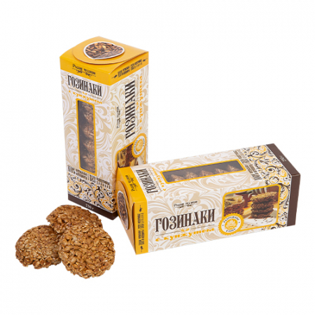 Одно из самых вкусных лакомств – родом из детства. Все мы хотя бы раз пробовали такую сладость, как «Гозинак» (также известную как «Козинак»). Любовь к очень питательному сладкому продукту многие сохранили и во взрослой жизни. Лакомство довольно разнообразное и популярно во всем мире. Мы изготавливаем наш десерт из ядер подсолнечного семени и семян кунжута, а вместо мёда связующим компонентом выступает карамельная патока и крем на растительных маслах. «Гозинаки с кунжутом» – отличный перекус для восстановления энергетического дефицита человеческого организма. Всего несколько штук этой сладости способны восстановить жизненные силы организма и восполнить умственные или физические энергозатраты. Особенно продукт рекомендован тем, кто ведёт активный образ жизни, а также допустим для употребления в пост.