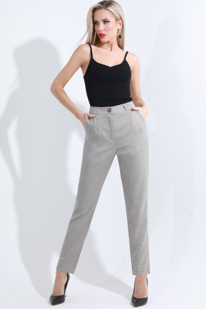 Брюки в клеточку коричнево-бежевого цвета – это элегантное решение для делового гардероба. Изготовленные из высококачественной костюмной ткани, эти брюки идеально подходят для ношения в течение всего года. Костюмная ткань обеспечивает долговечность и комфорт, сохраняя безупречный вид даже при частом использовании. Брюки имеют классический крой, что делает их универсальным элементом любого делового образа. Прямые штанины и средняя посадка обеспечивают комфорт и свободу движений, сохраняя при этом строгий и профессиональный внешний вид. Коричнево-бежевый цвет и клетчатый узор добавляют изделию стильности и элегантности, позволяя легко сочетать их с различными элементами гардероба. Для обеспечения долгого срока службы и сохранения первоначального внешнего вида, брюки требуют бережного ухода. Рекомендуется стирать их при температуре 30 градусов, используя мягкие моющие средства. Это помогает сохранить цвет и структуру ткани, предотвращая её изнашивание и деформацию. Следует избегать использования отбеливателей и агрессивных химических средств, которые могут повредить ткань.