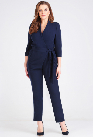 Комбиннезон женский отрезной по линии талии, по переду брюк два функциональных боковых кармана. По переду комбинезон застёгивается с линией полузаноса на две пуговицы. В области гульфика образовывается эффектная складка.
