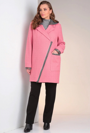Легкое пальто прямого силуэта со смещенной застежкой на молнию, на подкладке, без утеплителя. Воротник отложной с лацканами, с капюшоном (пристегивается на пуговицы). Внутренняя часть капюшона и низ рукавов из отделочной ткани. По переду обработан накладной карман на молнии. Спинка со средним швом.