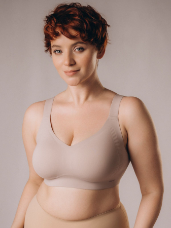 Бесшовный бюстгальтер без косточек изготовлен из полиамида и выполнен в розовом цвете. Внутри имеются слитные поролоновые чашки без Push-Up. Широкие бретели регулируются. На задней части бюстгальтера имеется застежка на крючках. Отсутствие швов делает модель незаметной под одеждой.
