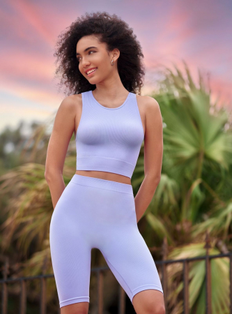 Женская пижама из полиамида очень мягкая на ощупь и приятная к телу. Так как она обладает высокой эластичностью и не сковывает движения, она прекрасно подойдет для занятий фитнесом, йогой, танцами, гимнастикой, бегом и другими видами спорта. Топ будет отлично сидеть по фигуре благодаря плотной эластичной резинке снизу и при этом комфортно ощущаться на коже. Женские шорты оснащены ластовицей для дополнительного удобства. Эта модель отлично облегает фигуру, подчеркивая ее контур и создавая ощущение «второй кожи».
