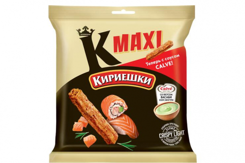 В пачке 50 г сухариков и упаковка соуса «Calve» 25 мл.