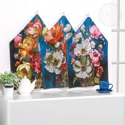 «Цветалина» – весенняя сказка, которая украсит вашу кухню. Полотенца из рогожки дополнены необычным авторским дизайном с россыпью цветов. На ткани детально прорисованы нежные пионы и яркие маки – образ богатства, благополучия и жизненной силы. Картина напоминает живописный сад с его невероятными красками и сладкими ароматами.