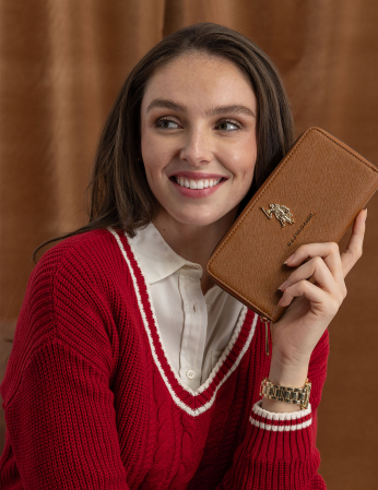 Our LARGE ZIP AROUND WALLET exudes luxury with its polished metal logo and a zip around closure, featuring a branded zipper pull for an extra touch of distinction. Inside, two compartments house eight slots for credit cards, complemented by a secure zippered pocket.