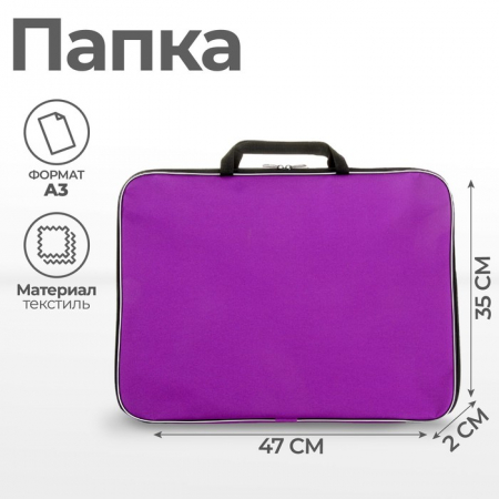 Папка для чертежей и рисунков А3, 470 х 350 х 20 мм, с ручками, текстильная, Calligrata Стандарт, Фиолетовая, плотность 600D (арт. 3341008)