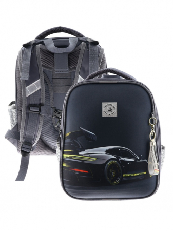 Ранец изготовлен из формованного EVA-материала и высокопрочного непромокаемого полиэстера. Размер 30 х 38 х 16 см. Вес 900 г. Прочные формованные стенки и дно ранца позволяют надежно защитить содержимое от влаги, загрязнений и предотвращают его замятие. Ранец с двумя вместительными отделениями, закрывающимися на реверсивную пластиковую молнию с металлическими «бегунками»; в первом — «плавающие» перегородки для тетрадей и учебников, во втором – большой карман из сетки и карманы-органайзеры для канцелярских принадлежностей