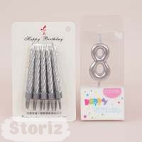 Комплект свечей №15 цифра -8-(серебр) + 1 упаковка серебристых свечек (арт. 0850542296)