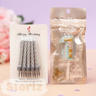 Комплект свечей цифра -1-(Patterned Mint) + 1 упаковка серебристые 10 шт. (арт. 947005967)