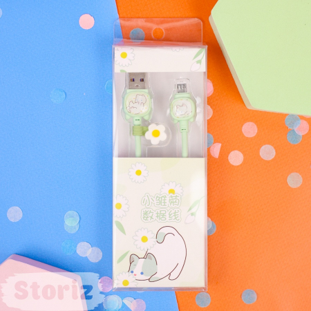 Кабель зарядка "Котик" зеленый (USB micro) (арт. 2005671606)