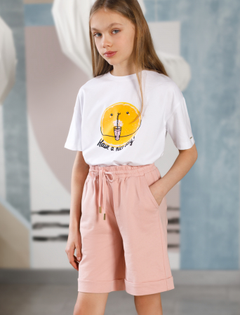 Свободные шорты с карманами, выполнены из премиального облегченного футера. Мягкое трикотажное полотно создаст приятное прилегание к телу. Модная форма подарит комфорт и сделает образ ребенка стильным. С футболкой F49.403 шорты составят отличный комплект, мотивирующий на движение!