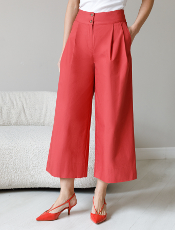 Кюлоты А-силуэта выполнены из легкого хлопкового поплина. Модель с карманами и средней посадкой. Натуральный состав ткани обладает высокой воздухопроницаемостью и гигроскопичностью. В изделии будет комфортно, даже в самое жаркое время года. Подходит для любой фигуры. Сочетается в костюме с блузкой D29.247 и D29.264.