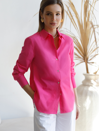 Блузка выполнена из легкого хлопкового поплина. Лаконичная модель с высокими манжетами и пуговицами из натурального перламутра хорошо впишется в любой гардероб и внесет яркий летний акцент в образ. Натуральный состав ткани обладает высокой воздухопроницаемостью и гигроскопичностью. В изделии будет комфортно, даже в самое жаркое время года. Подходит для любой фигуры. На спинке фирменный логотип бренда.