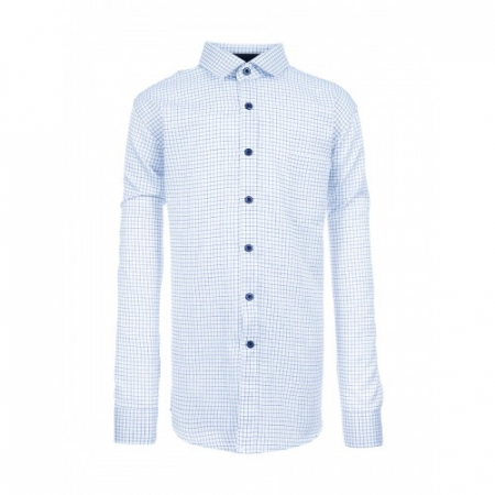Модель с накладным нагрудным карманом.Отделка контрастной тканью по вороту и манжетам с пуговицами в цвет отделки. Цвет белый (принтованная). Силуэт прямой. Длинный рукав. Товар сертифицирован.