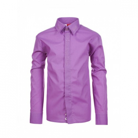 Состав: 55% хлопок, 45% полиэстер. Цвет фиолетовый. Отделка вышивкой по вороту и по планке. Крой прямой. Длинный рукав. Товар сертифицирован.