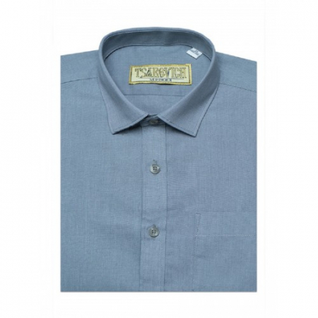 Рубашка серо-голубого цвета без декора органично дополнит комплект для школы.
